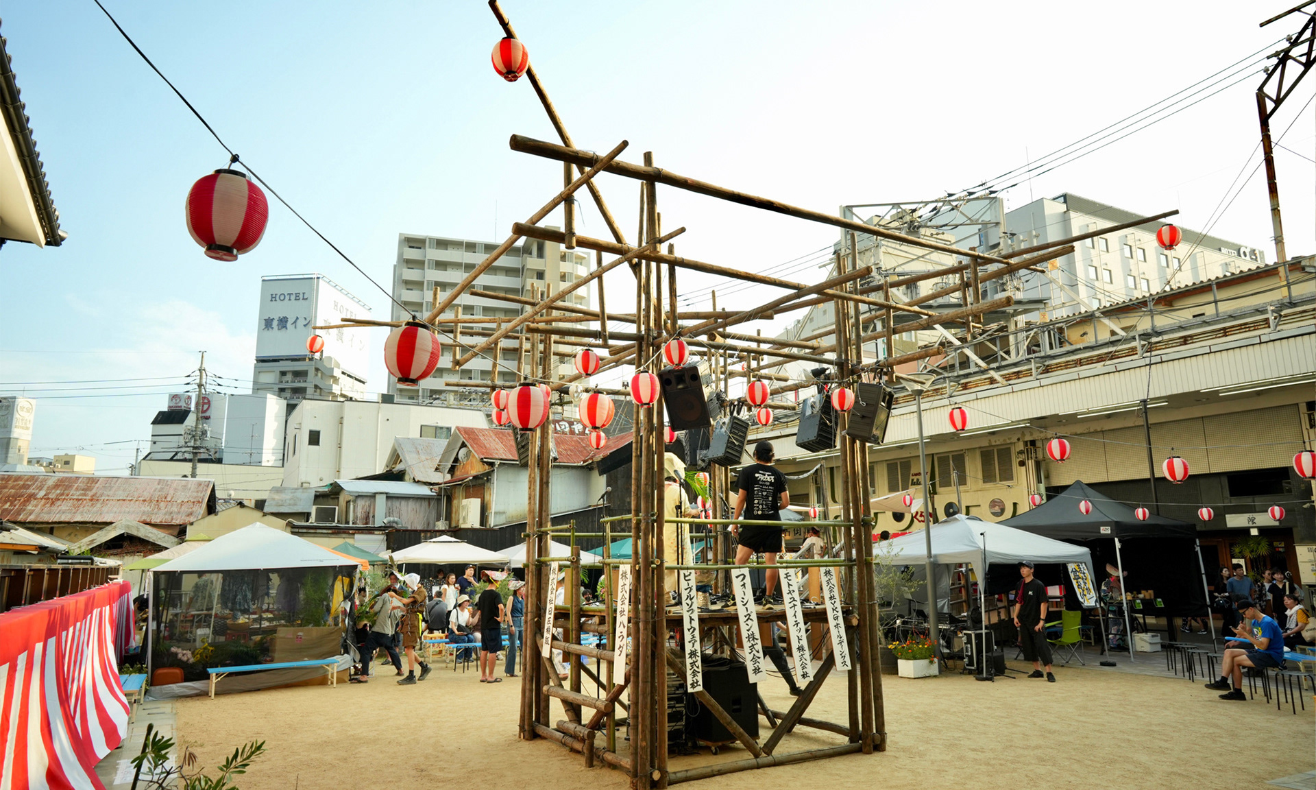 A summer festival that creates a relaxed and inclusive space where people of all ages, nationalities, and abilities can naturally connect through music and come together as one. It fosters a community that embraces diversity and allows everyone to truly enjoy themselves. I was responsible for designing and building the festival tower (yagura) as well as planning the overall venue layout.