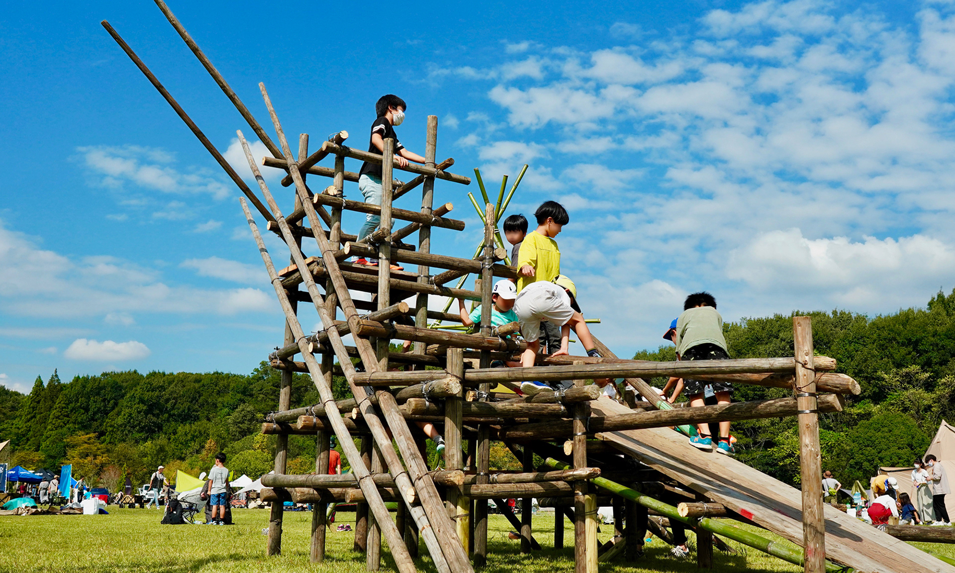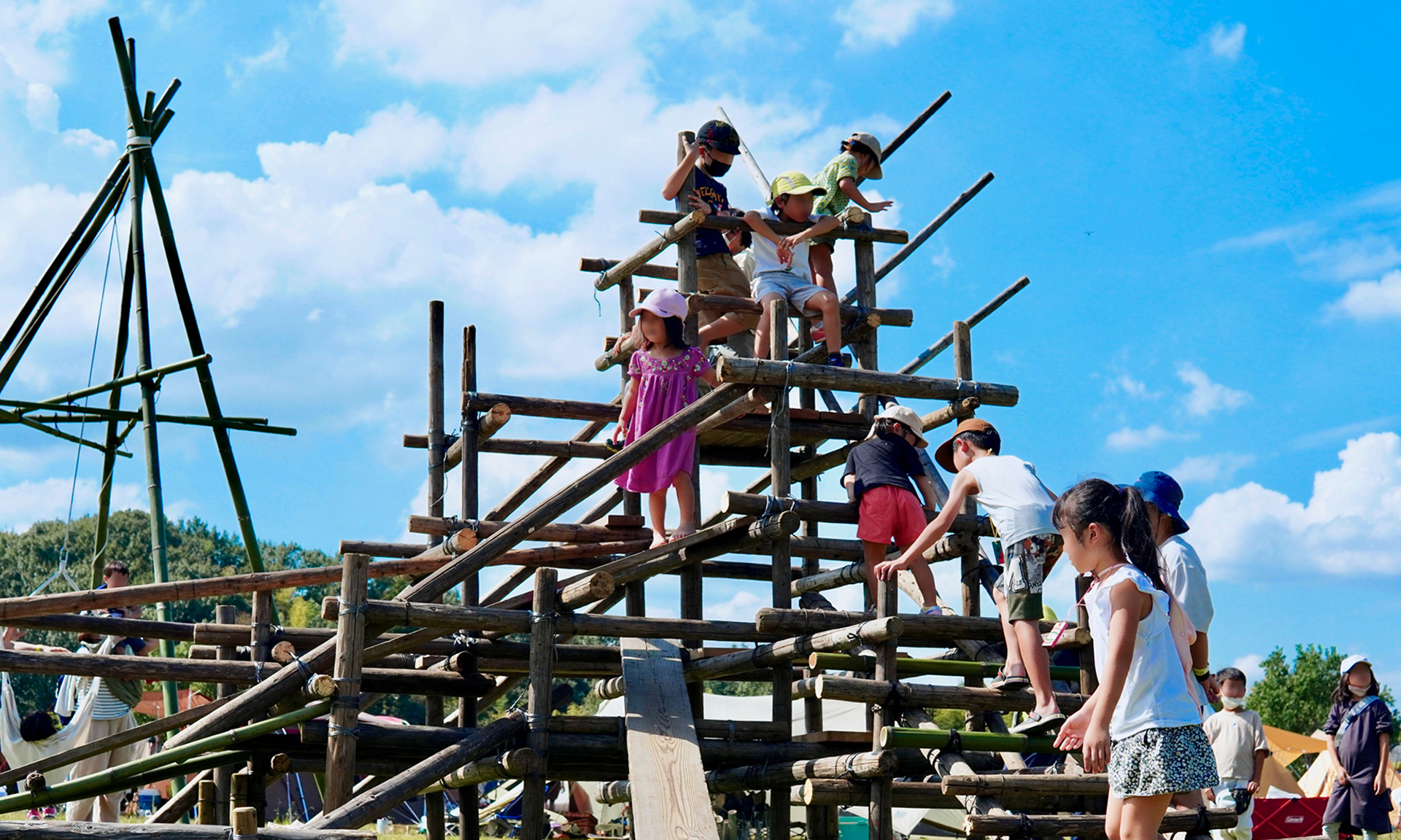Responsible for stage decoration and the creation of educational play equipment. The festival was designed at a perfect scale for both adults and children, featuring numerous family-friendly activities and workshops. For the stage decoration, I created a piece that transforms depending on the viewer's angle. In the center of the camping area, I built a custom jungle gym and swing set that offers endless ways to play.